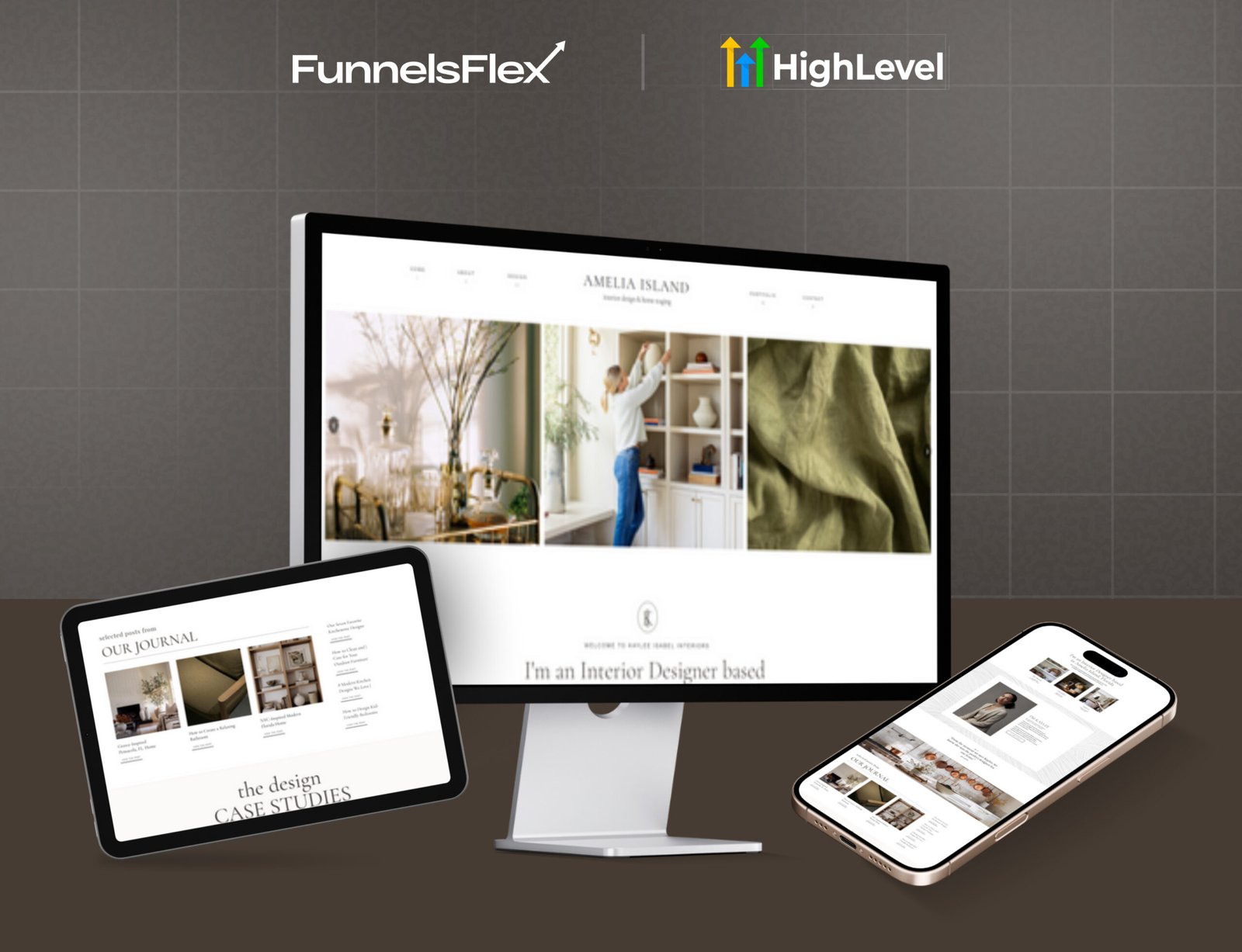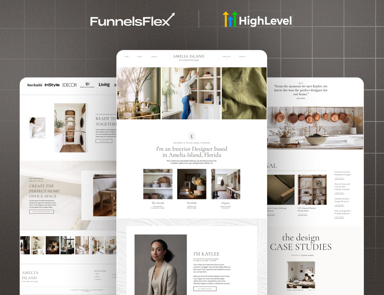 - Freelance decorators showcasing projects through a custom interior design website template GHL