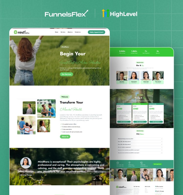 • Mental health clinics seeking an online therapy GoHighLevel website with smooth booking and clear messaging.