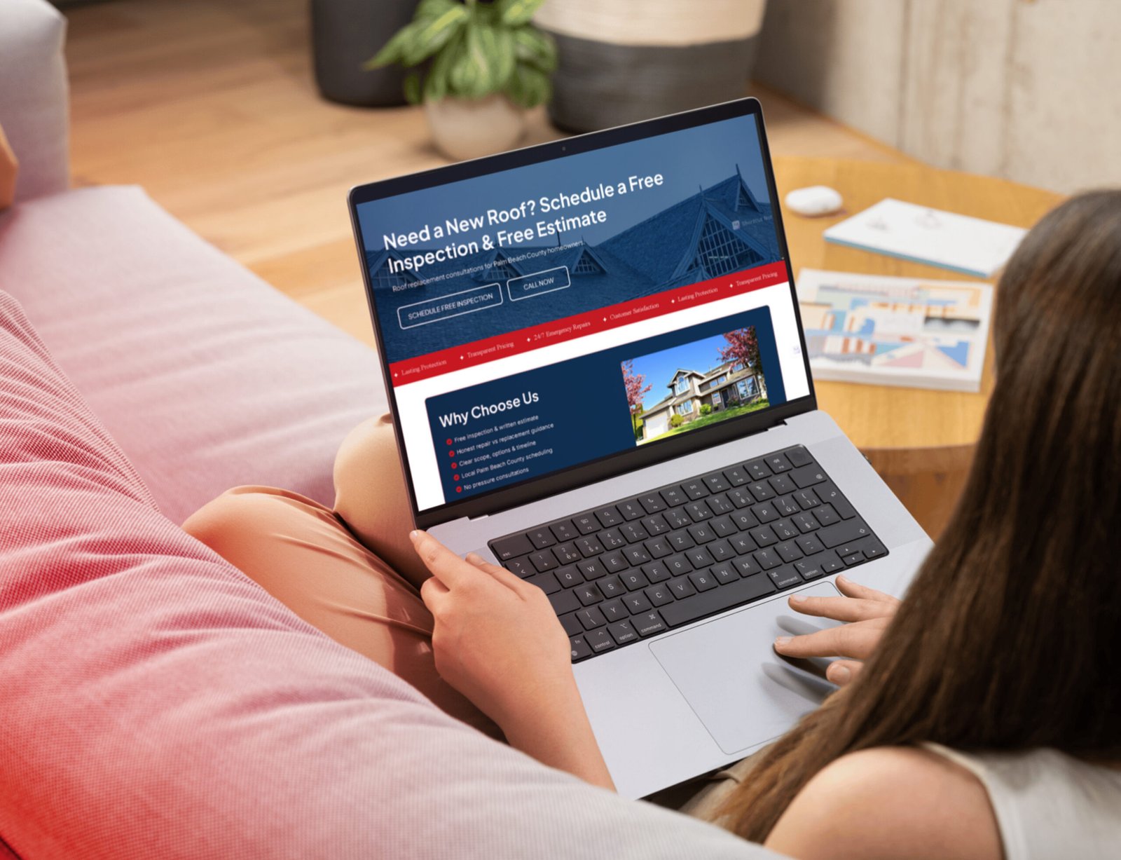 Roofing-focused landing page layout