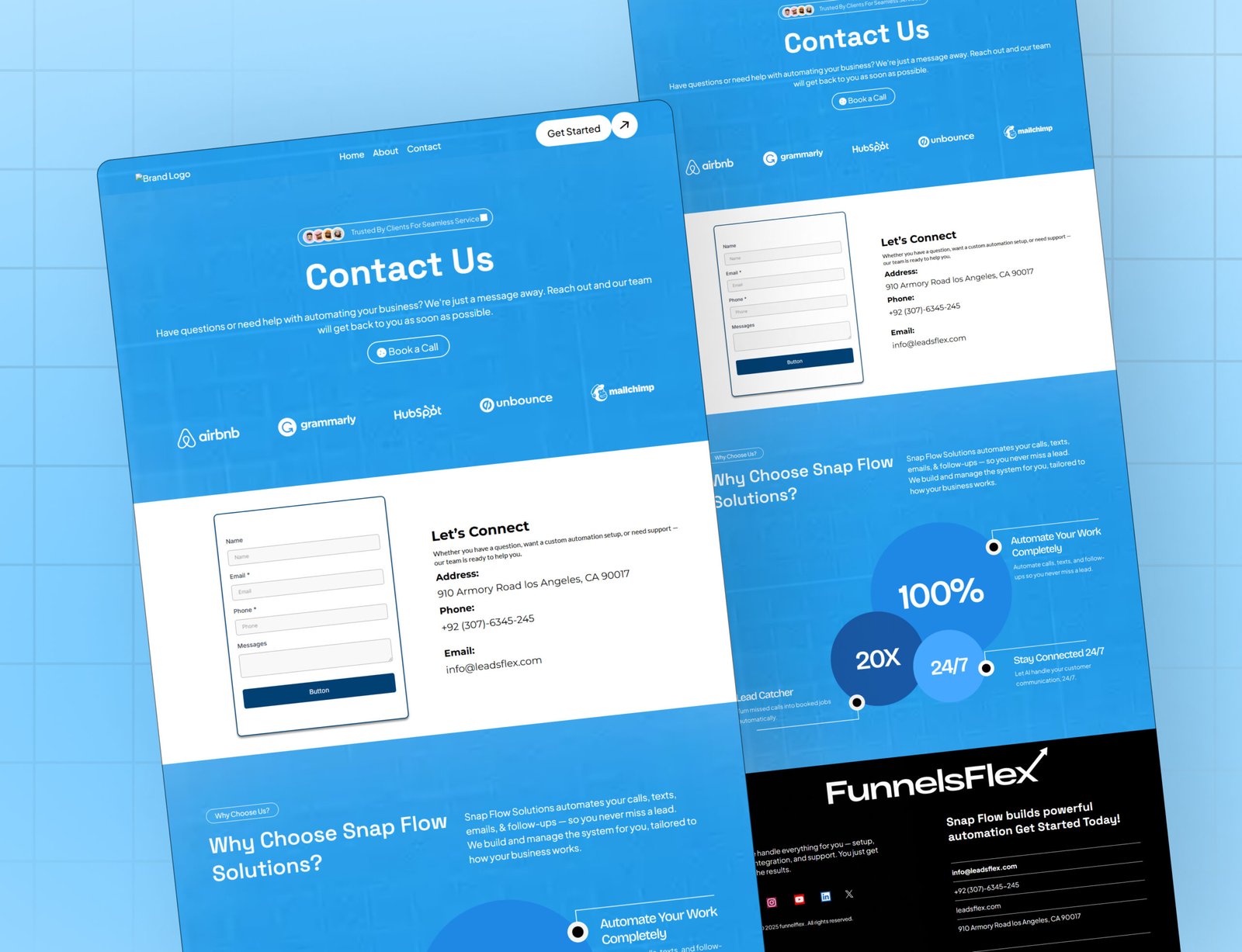 - Complete funnel with Home, Contact Us, and Thank You pages