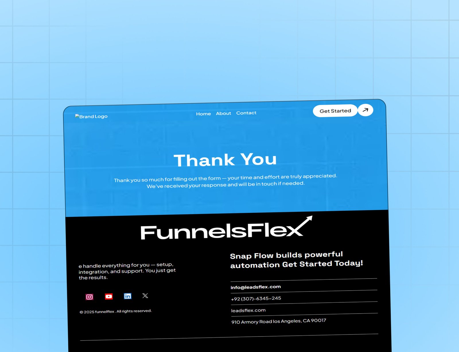 - Thank You Page – Clear, engaging messaging post-conversion.